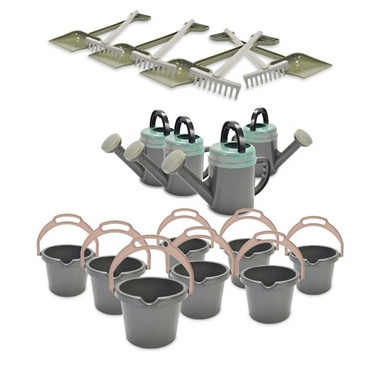 This set, made by Dantoy, is made from recycled and Nordic Swan Ecolabelled plastic. Ideal for use in water or mud play or use to tend the veg patch or growing area.