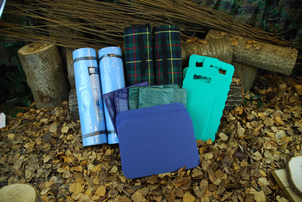 A complete set of mats and rugs ideal for use for sitting outside on damp ground. The foam mats are made from lightweight foam and the roll matts can be used as they are or can be cut up into smaller pieces. Both mats offer protection from the cold and damp when sitting. Colours will vary. The rugs have a waterproof backing to prevent moisture soaking through. The tarpaulin are lightweight and idea for packing into bags and carrying about.