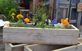 Recycled wood planters with wide edges for seating. Measuring 1200mm x 1000mm x 435mm high. Delivered assembled. The planter does not have a bottom. Seeds and soil not included.